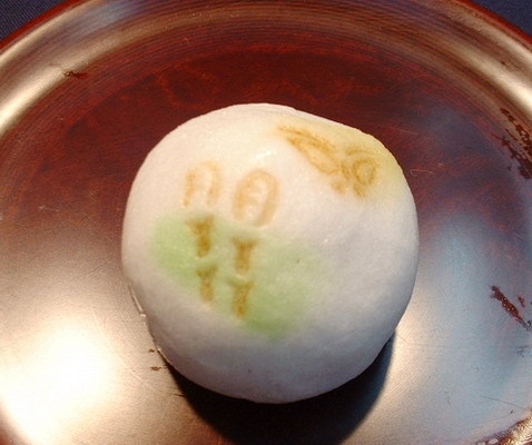 ■春の風情を表現してみた薯蕷まんじゅうです。有機栽培小豆を使ったこしあんを包みました。