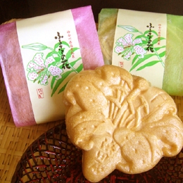 ■神奈川県指定銘菓です。神奈川県の県花のゆりの形の最中で、小倉あん、栗入り白あんの2種類があります。最中皮も大納言小豆も有機栽培、白あんは無漂白いんげんを使用しています。どちらも甘さ抑えめで人気の商品です。