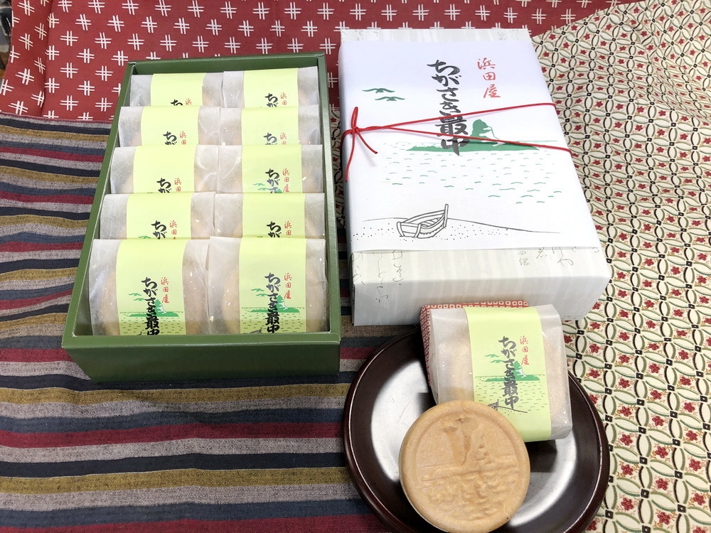浜田屋銘菓ちがさき最中の10個入りです。当店売れ筋No1パッケージです。